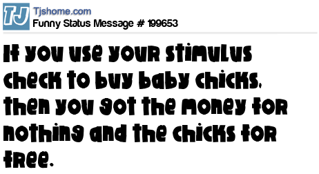 - # 198809 If I use my stimulus money to buy baby chickens, does this mean we got money for nothing and chicks for free?