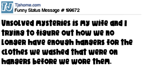 X says Unsolved mysteries is my wife and I trying to figure out how we no longer have enough hangers for the clothes we washed that were on hangers before we wore them.
