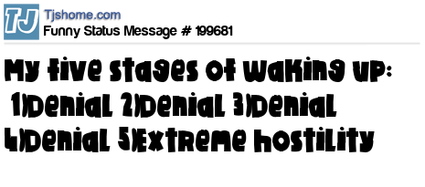 X says My five stages of waking up: 1)Denial 2)Denial 3)Denial 4)Denial 5)Extreme hostility
