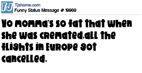 - # 20176 Yo mama's so fat that when she was cremated, half of the flights to Europe were cancelled..