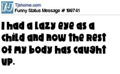 X says I had a lazy eye as a child and now the rest of my body has caught up.