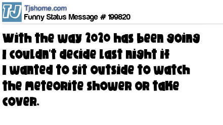 X is With the way 2020 has been going I couldn't decide last night if I wanted to sit outside to watch the meteorite shower or take cover.