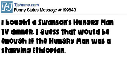 X says I bought a Swanson's Hungry Man TV dinner. I guess that would be enough if the Hungry man was a starving Ethiopian.