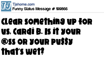 X says Clear something up for us, Cardi B. Is it your @ss or your pu$$y that's wet?