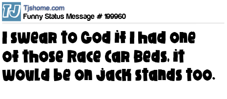 X I swear to God if I had one of those Race Car Beds, it would be on jack stands too.