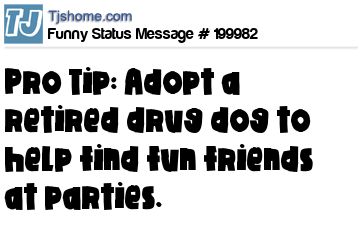 X says Pro Tip: Adopt a retired drug dog to help find fun friends at parties.