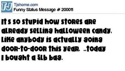 X says it’s so stupid how stores are already selling halloween candy, like anybody is actually going door-to-door this year, ..today I bought a 5lb bag.