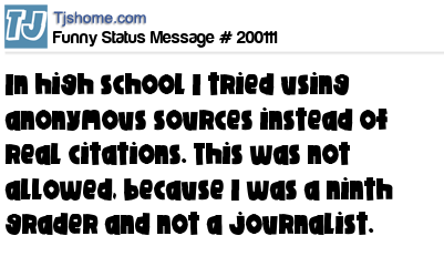 X says In high school I tried using anonymous sources instead of real citations. This was not allowed, because I was a ninth grader and not a journalist.