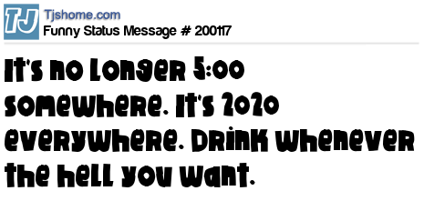 X says It's no longer 5:00 somewhere. It's 2020 everywhere. Drink whenever the hell you want.
