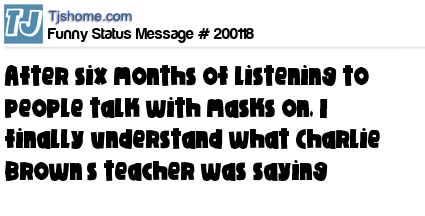 X says After six months of listening to people talk with masks on, I finally understand what Charlie Brown’s teacher was saying