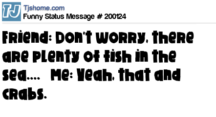 X says Friend: Don't worry, there are plenty of fish in the sea.... Me: Yeah, that and crabs.
