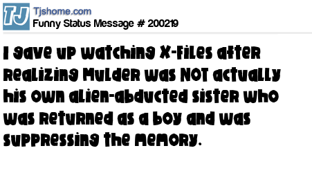 X says I gave up watching X-Files after realizing Mulder was NOT actually his own alien-abducted sister who was returned as a boy and was suppressing the memory.