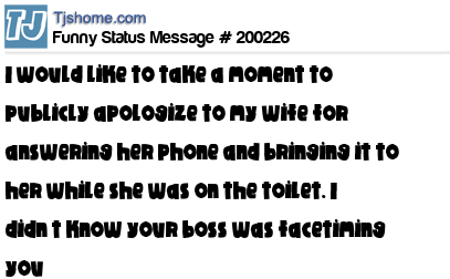 X says I would like to take a moment to publicly apologize to my wife for answering her phone and bringing it to her while she was on the toilet. I didn’t know your boss was facetiming you