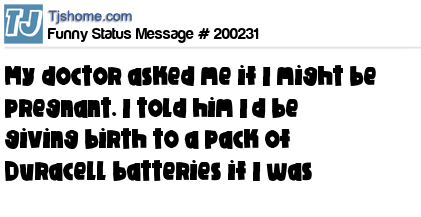 X says My doctor asked me if I might be pregnant. I told him I’d be giving birth to a pack of Duracell batteries if I was