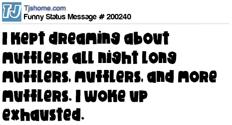 - # 192393 Last night I dreamed that I was a muffler. When I woke up I was exhausted.