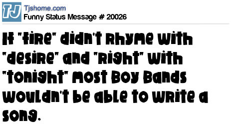 X If "fire" didn't rhyme with "desire" and "right" with "tonight" most Boy Bands wouldn't be able to write a song.