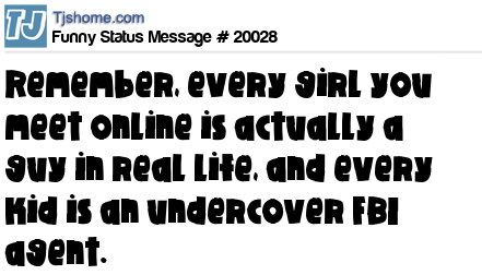 X Remember, every girl you meet online is actually a guy in real life, and every kid is an undercover FBI agent.