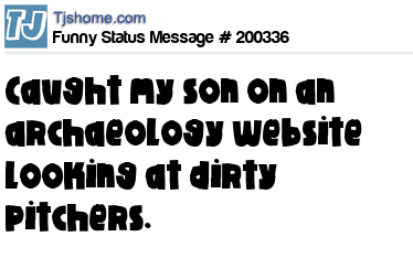X says Caught my son on an archaeology website looking at dirty pitchers.