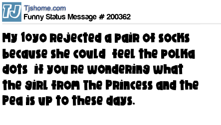 X says My 10yo rejected a pair of socks because she could “feel the polka dots” if you’re wondering what the girl from The Princess and the Pea is up to these days.
