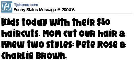 X says Kids today with their $50 haircuts. Mom cut our hair & knew two styles: Pete Rose & Charlie Brown.