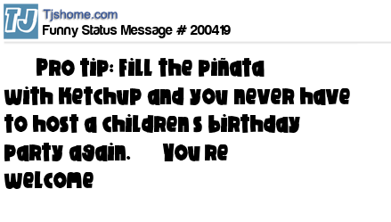 - # 208507 Pro tip: Fill the piñata with ketchup and you'll never have to host a children’s birthday party again. You’re welcome.