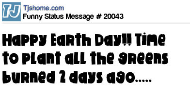 X says Happy Earth Day!! Time to plant all the greens burned 2 days ago.....