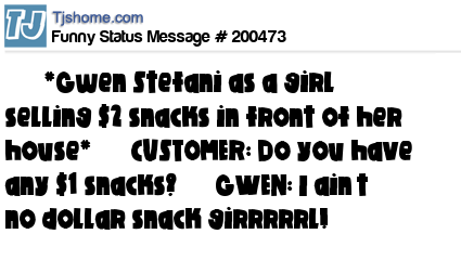 X says       *Gwen Stefani as a girl selling $2 snacks in front of her house*      CUSTOMER: Do you have any $1 snacks?      GWEN: I ain’t no dollar snack girrrrrl!