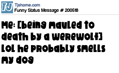 X says me: [being mauled to death by a werewolf] lol he probably smells my dog