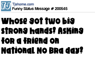 X says Whose got two big strong hands? Asking for a friend on National No Bra day?