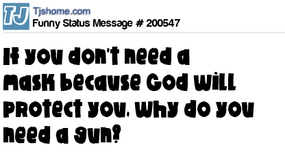 X says If you don't need a mask because God will protect you, why do you need a gun?
