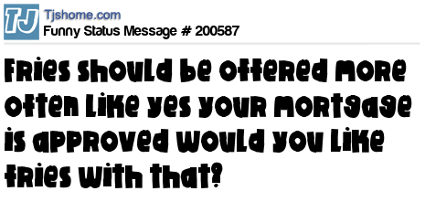 X says Fries should be offered more often like yes your mortgage is approved would you like fries with that?