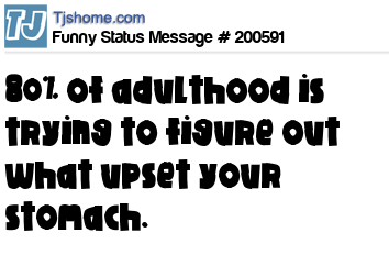 X says 80% of adulthood is trying to figure out what upset your stomach.