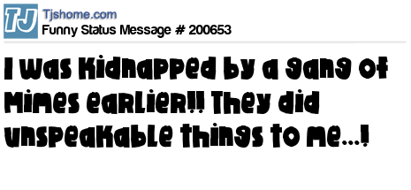 X says I was kidnapped by a gang of Mimes earlier!! They did unspeakable things to me...!