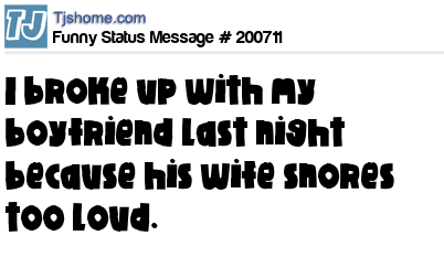 X says I broke up with my boyfriend last night because his wife snores too loud.