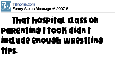 X says That hospital class on parenting I took didn’t include enough wrestling tips.