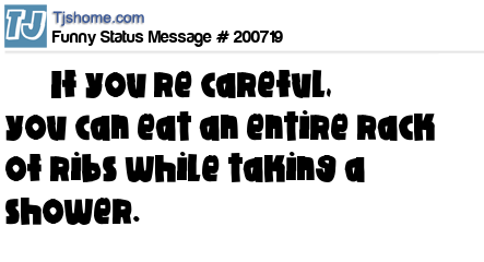X says If you’re careful, you can eat an entire rack of ribs while taking a shower.