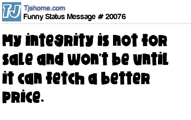 X says My integrity is not for sale and won't be until it can fetch a better price.