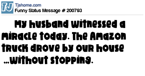 X says My husband witnessed a miracle today. The Amazon truck drove by our house …without stopping.