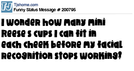 X says I wonder how many mini Reese’s cups I can fit in each cheek before my facial recognition stops working?