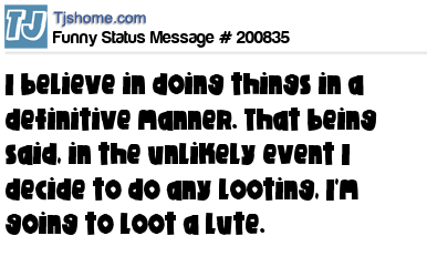 X says I believe in doing things in a definitive manner. That being said, in the unlikely event I decide to do any looting, I'm going to loot a lute.