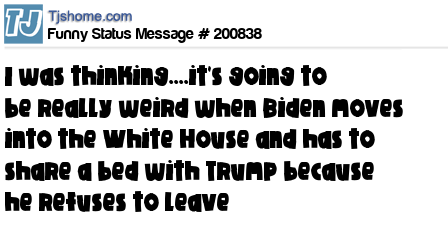 X is I was thinking....it's going to be really weird when Biden moves into the White House and has to share a bed with Trump because he refuses to leave
