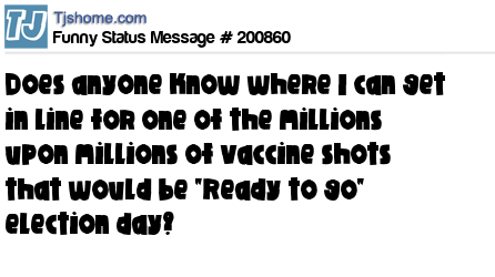 X is Does anyone know where I can get in line for one of the millions upon millions of vaccine shots that would be "Ready to go" election day?