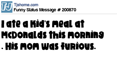 X says I ate a kid's meal at McDonalds this morning . His mom was furious.