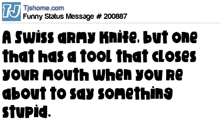 X says A Swiss army knife, but one that has a tool that closes your mouth when you’re about to say something stupid.