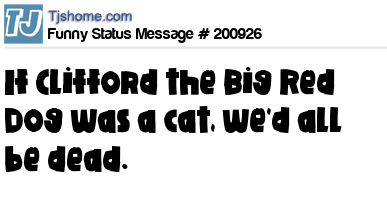 X says If Clifford the Big Red Dog was a cat, we'd all be dead.