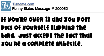 X says If you're over 23 and you post pics of yourself flipping the bird, just accept the fact that you're a complete imbecile.