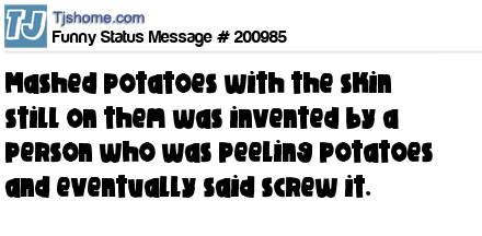 X says Mashed potatoes with the skin still on them was invented by a person who was peeling potatoes and eventually said screw it.