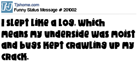 X says I slept like a log, which means my underside was moist and bugs kept crawling up my crack.