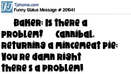 X says Baker: Is there a problem? Cannibal, returning a mincemeat pie: You’re damn right there’s a problem!