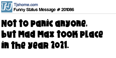 X says Not to panic anyone, but Mad Max took place in the year 2021.